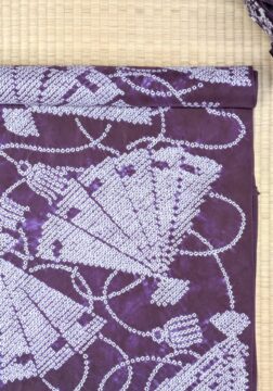 今回の注目は、おめでたい扇面の紫根染名古屋帯地と絞りのグラデーションが美しい茜染名古屋帯地。